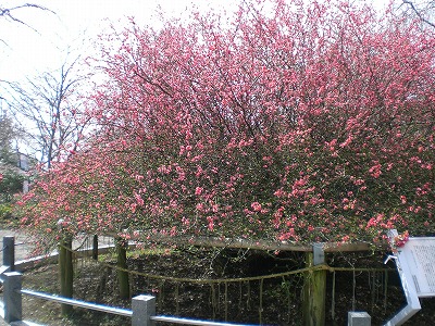 これは、神社敷地内のボケの木。